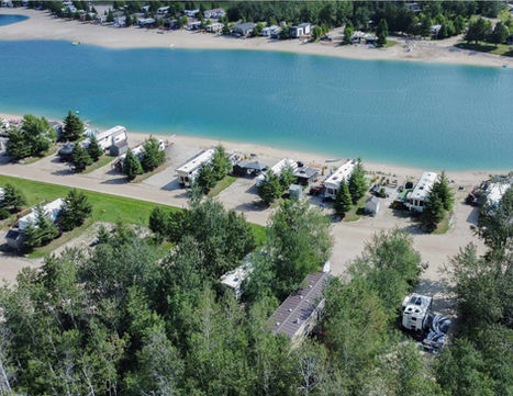 SOLD - Destination trailer on westside waterfront site includes: king primary & double sleeping lofts (sleeps 7), dual air conditioners, dual entry, large kitchen with island & residential fridge, large living area with fireplace & lakeview seating. Site includes (to be installed): upper deck 16'x24' (level walk out of patio doors) with glass railing plus lower sundeck 12'x12' facing beach.